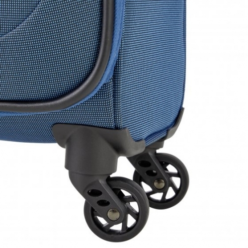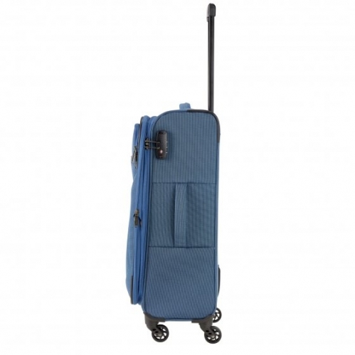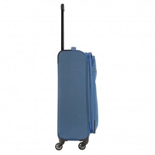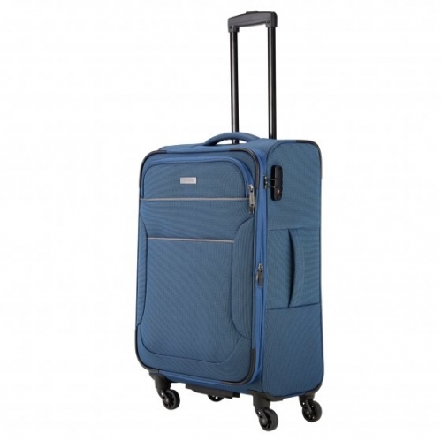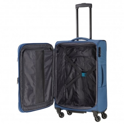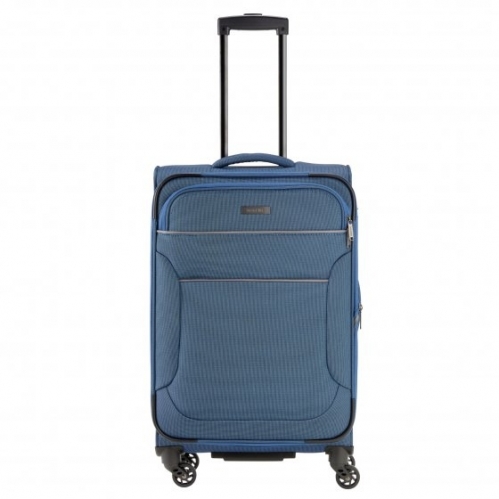 Textilní kufr na čtyřech kolečkách v nadčasovém designu vybavený integrovaným TSA zámkem a expandérem.
