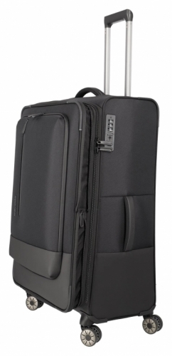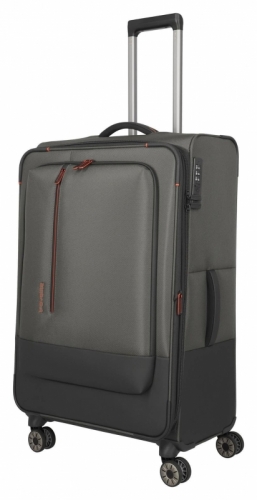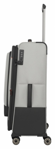 Čtyřkolečkový velký textilní kufr z recyklovaného polyesteru s vodoodpudivým dnem, TSA zámkem, expandérem a integrovanou jmenovkou.