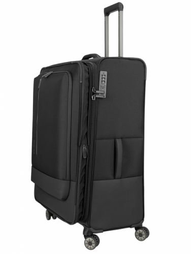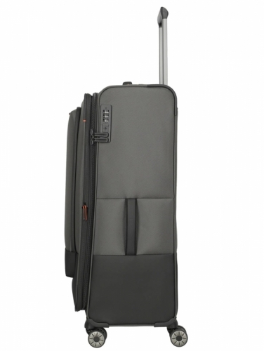 Extra velký textilní kufr na čtyřech kolečkách s vodoodpudivým dnem, TSA zámkem, expandérem a integrovanou jmenovkou vyrobený z recyklovaného polyesteru.